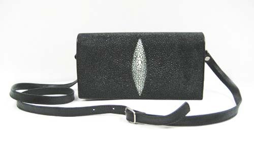 Genuine Stingray Leather Shoulder Bag in Black Stingray Skin #STW390S