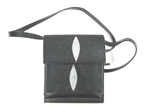 Genuine Stingray Leather Shoulder Bag in Black Stingray Skin #STW389S