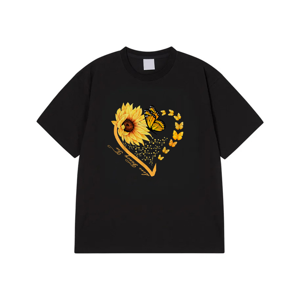 Sunflower Butterfly Heart Summer Floral T-Shirt