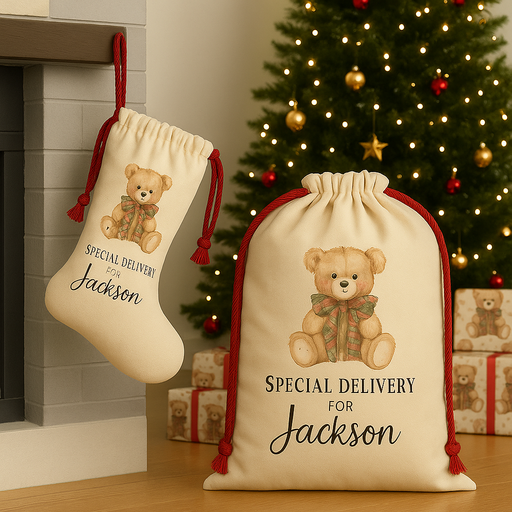 Special Delivery Bear Christmas Sack, Stocking & Gift Paper