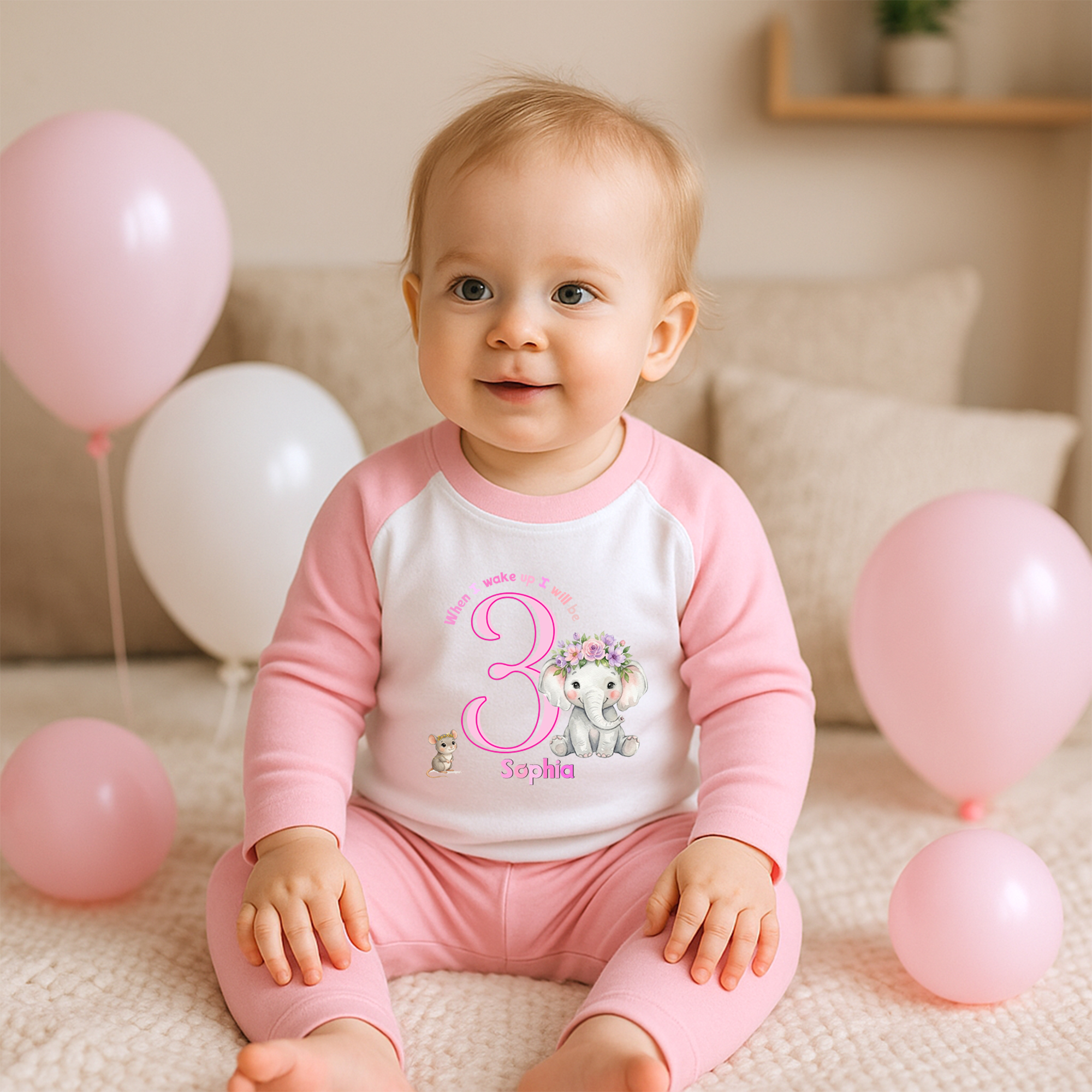 Personalised Girls Birthday Elephant Pyjama Set – Any Age Custom Name